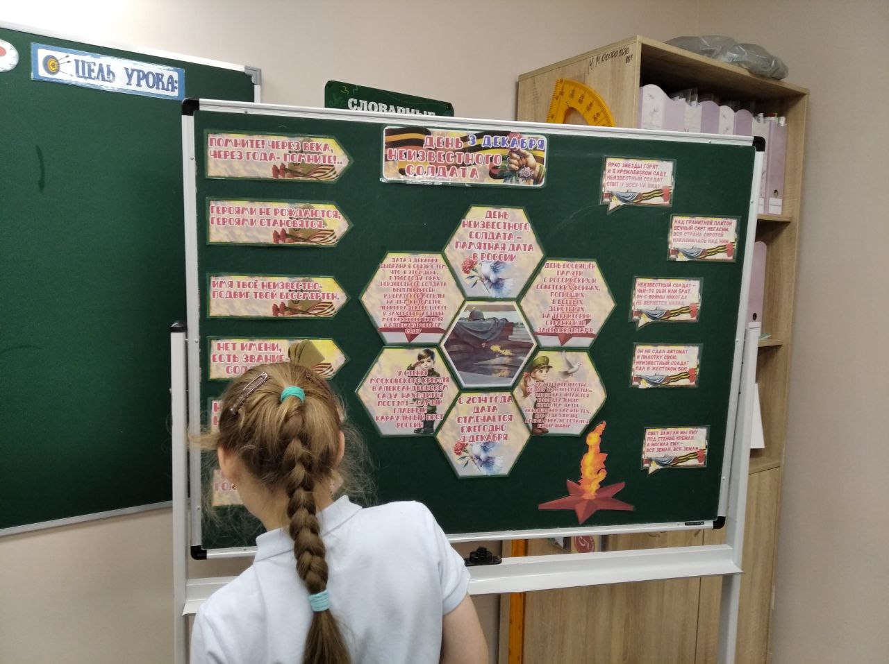 Во всех классах школы прошли тематические классные часы "Вам, неизвестные солдаты, посвящаем..." Эта дата объединяет память о всех пропавших без вести во время войн и военных конфликтов. Ребята в ходе просмотра презентации по данной теме повторили традиции этого дня, вспомнили историю возникновения праздника, обсудили воспоминания свидетелей крупных оборонительных сражений, исторические фото из открытых источников и иллюстрации