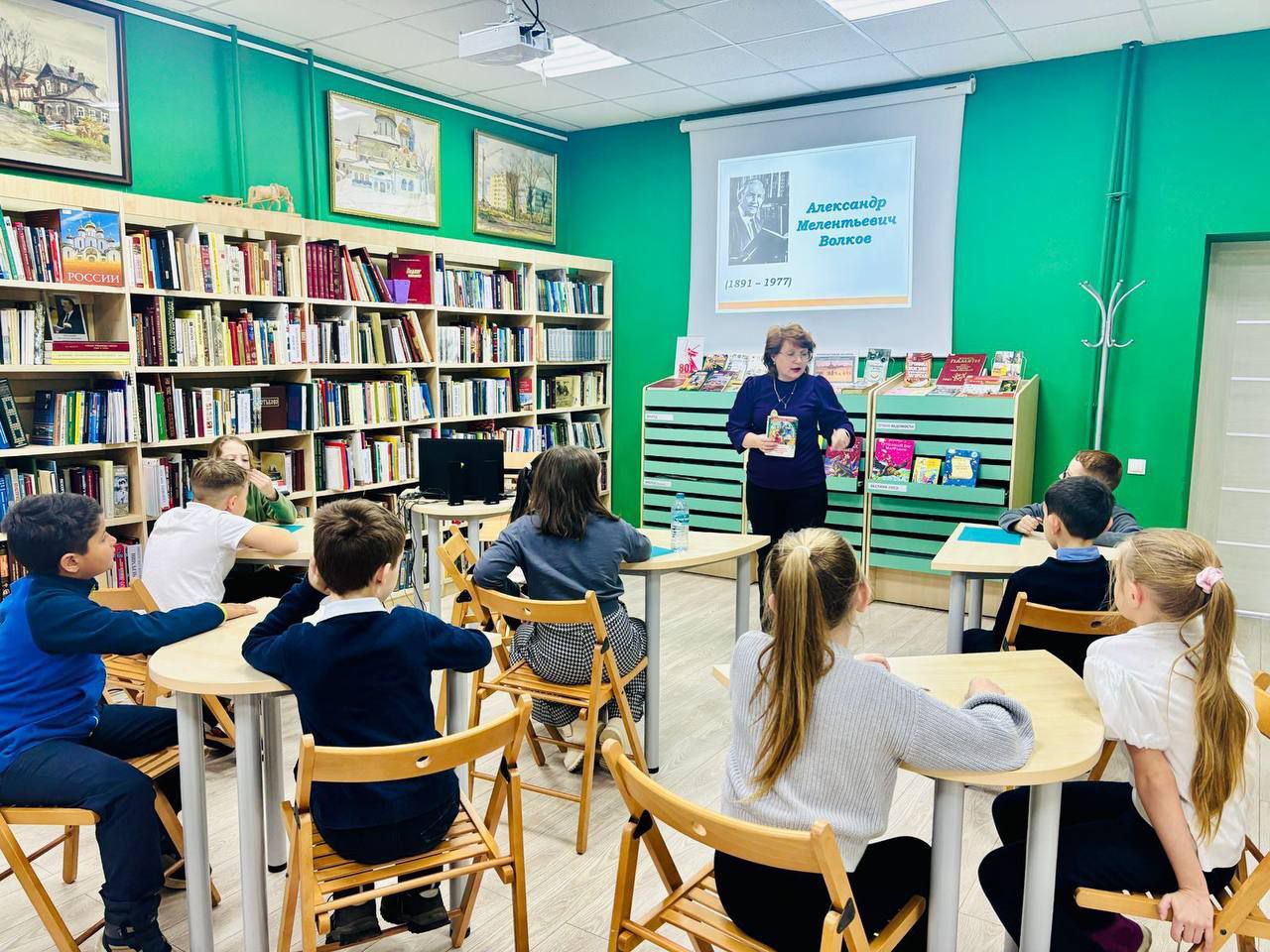Что общего между «Волшебником Изумрудного города» А.М. Волкова и «Удивительным волшебником из страны Оз» Л.Ф. Баума? О сходстве и различии этих книг, об авторе «нашего» волшебника – талантливом писателе и педагоге Александре Мелентьевиче Волкове шел разговор с учениками 3 класса в библиотеке им. А.С. Горловского