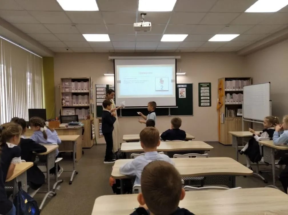 Учащиеся 2 г и 2 д класса приняли участие в мероприятии "Безопасный город", которое провел сотрудник Школы безопасности.