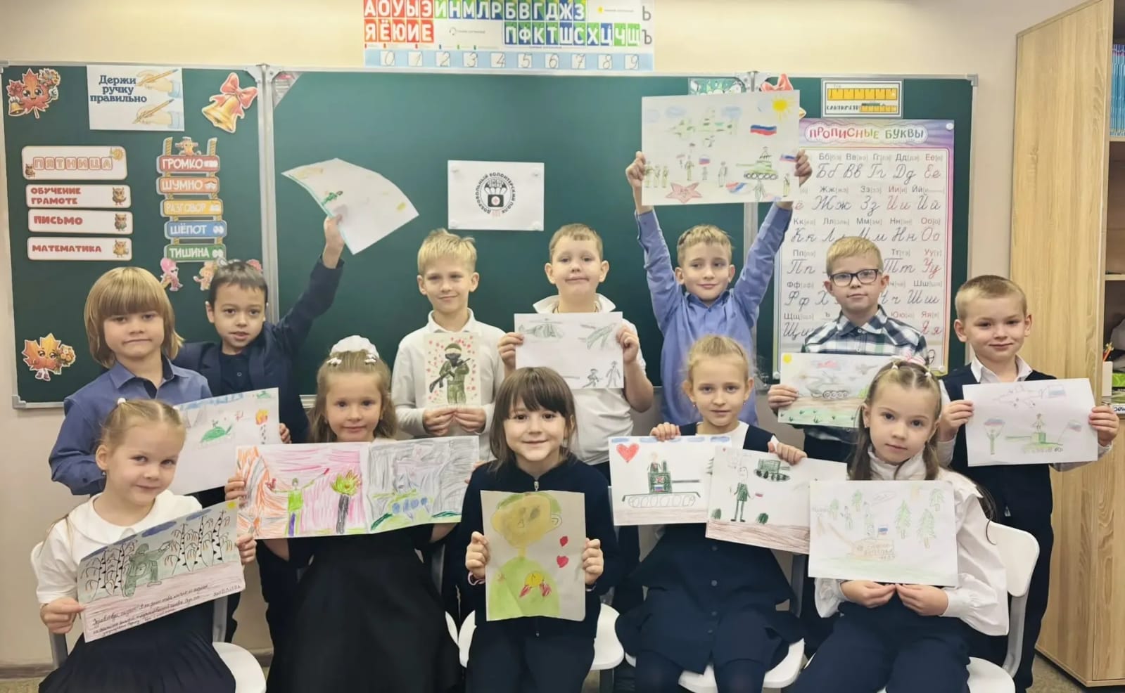 Обучающиеся 1 «Г» класса подготовили послания и рисунки для военнослужащих, участвующих в специальной военной операции.