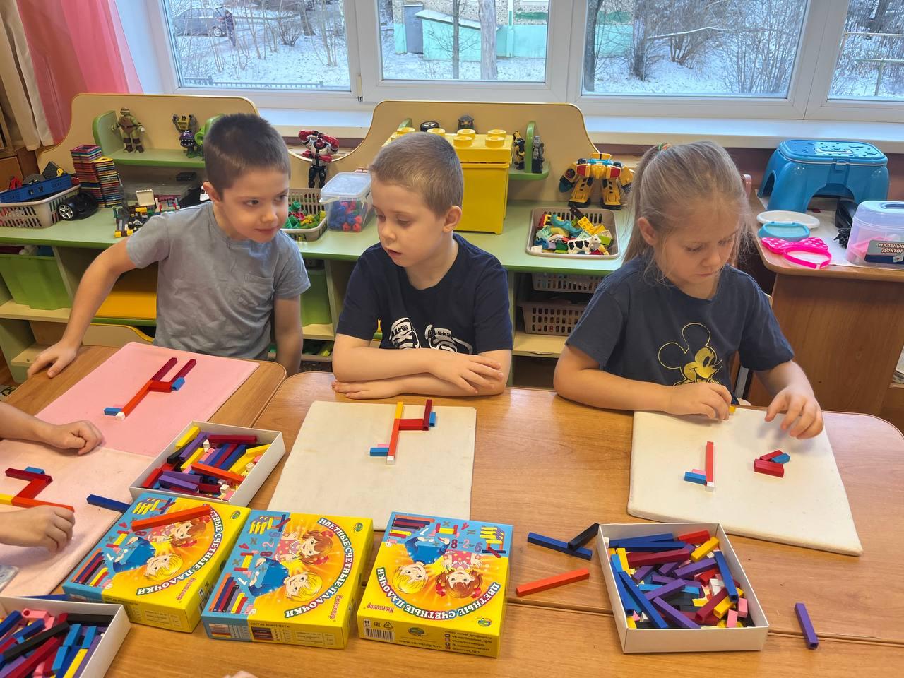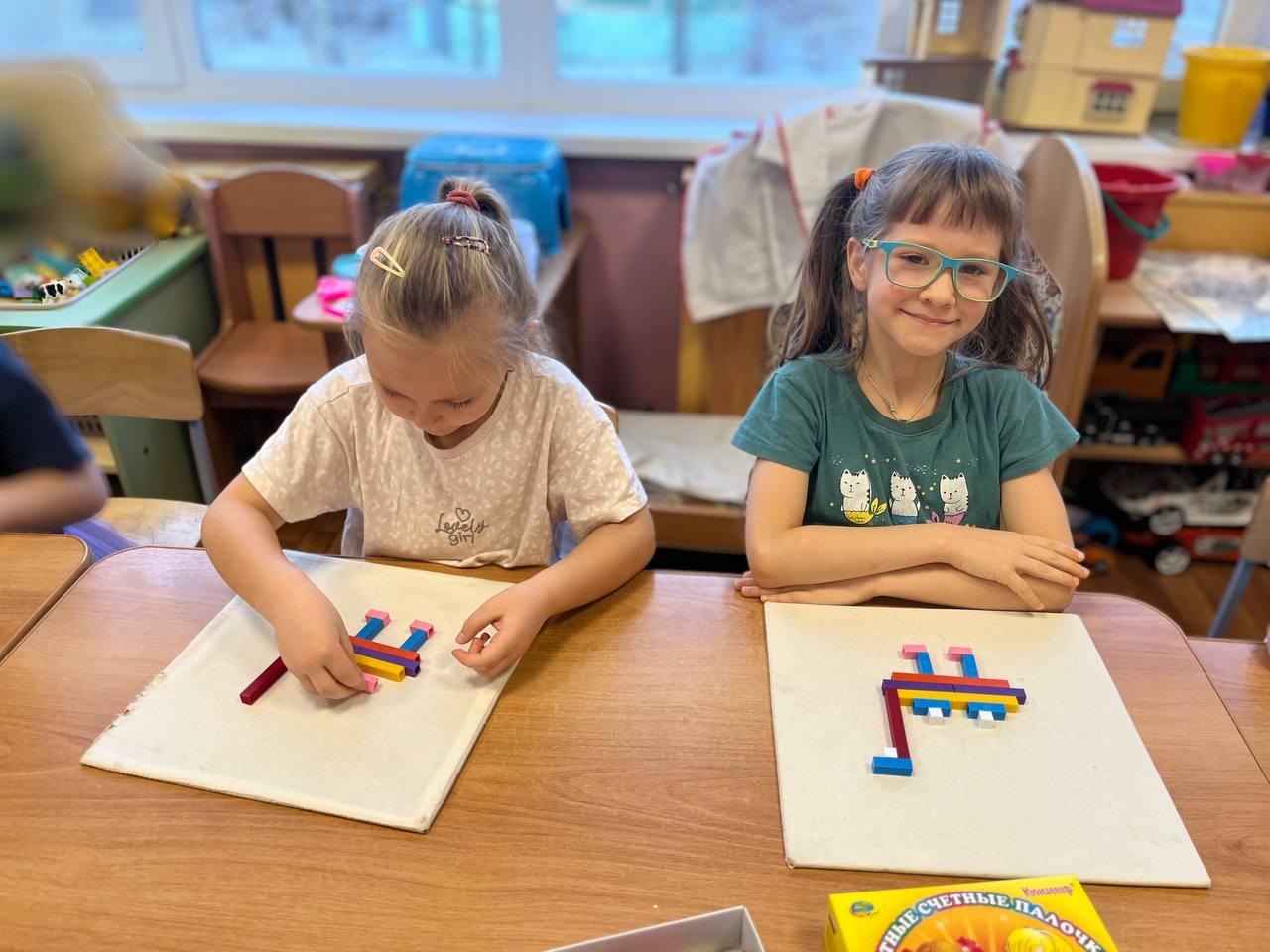 В процессе занятия дети считали и сравнивали, находили отличия в картинках, выполняли логические упражнения с палочками и блоками Дьенеша, учились делать выводы и умозаключения.