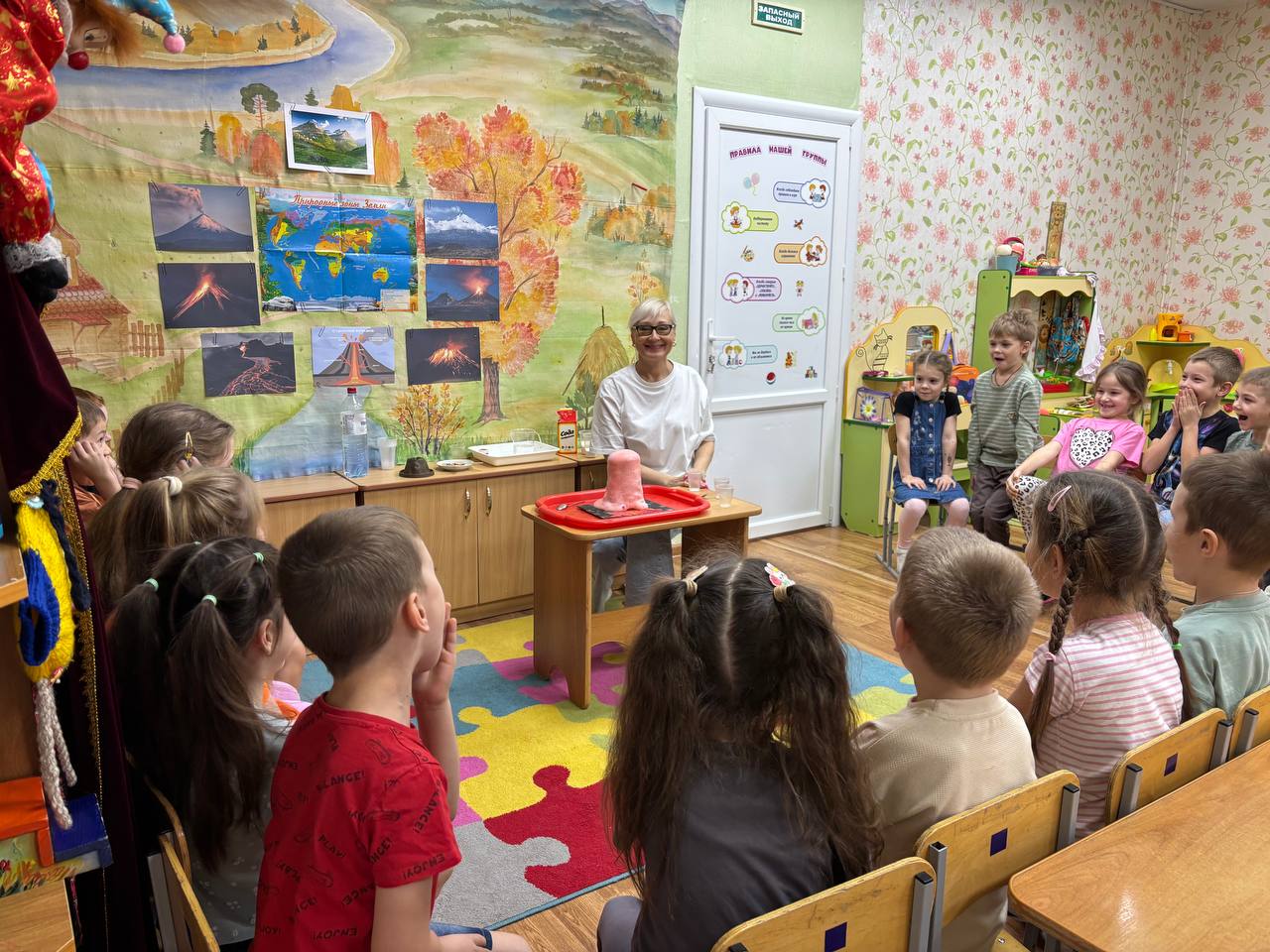 В рамках реализации регионального прооекта «Предшкола- стандарт детского сада» на тематической неделе«Творческая лаборатория "Наука маленького .роста" состоялось удивительное, волшебное и увлекательное мероприятие.Сегодня в подготовительной группе «Светлячки» извергались вулканы!Это было настоящее научное волшебство! На занятии ребята вместе с воспитателем отправились в увлекательное путешествие к центру Земли.Ребята узнали:
