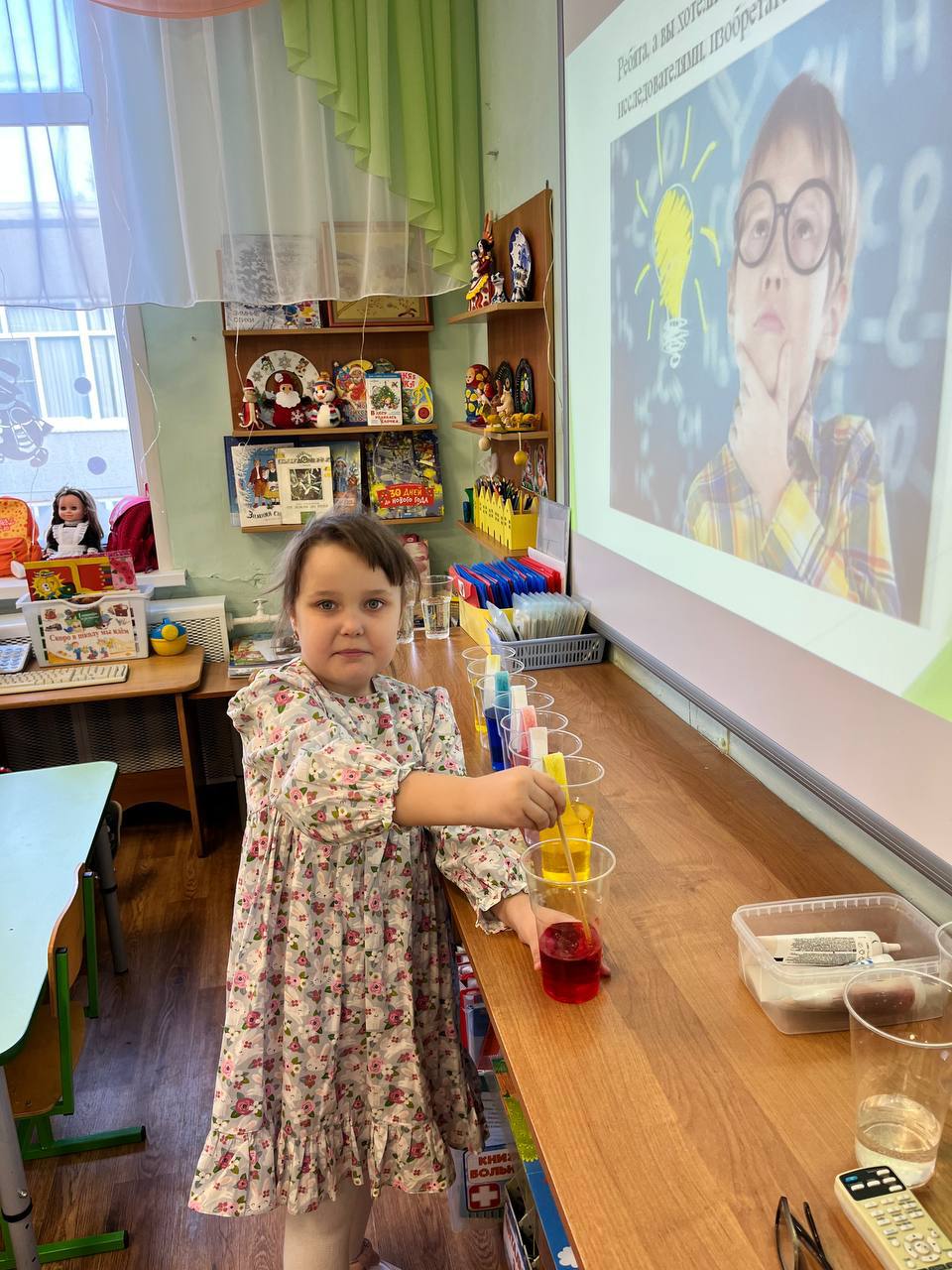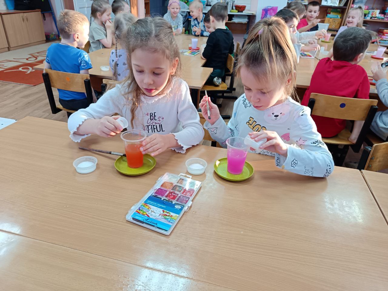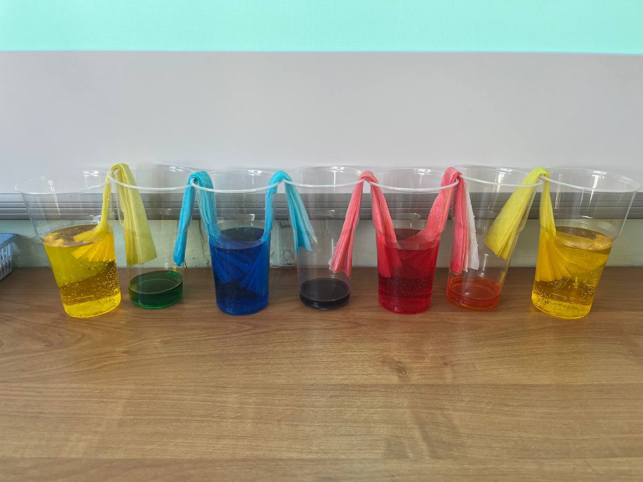 В рамках реализации проекта «Предшкола: стандарт детского сада»на тематической неделе «Экспериментариум» в подготовительной группе «Почемучки» прошёл День науки, посвящённый знакомству детей с увлекательным миром экспериментов. В ходе мероприятия дети смогли принять участие в создании двух познавательных опытов: "Шагающая вода" и "Лавовая лампа". Опыт "Шагающая вода" наглядно продемонстрировал детям принцип капиллярности, когда вода перемещается по бумажным полотенцам, соединяющим стаканы с разными цветами. Дети с интересом наблюдали за смешиванием цветов и формированием новых оттенков. Создание "Лавовой лампы" позволило объяснить основы плотности жидкостей и конвекции. Мероприятие было направлено на развитие познавательного интереса детей, формирование навыков наблюдения и анализа, а также на стимулирование стремления к исследовательской деятельности.