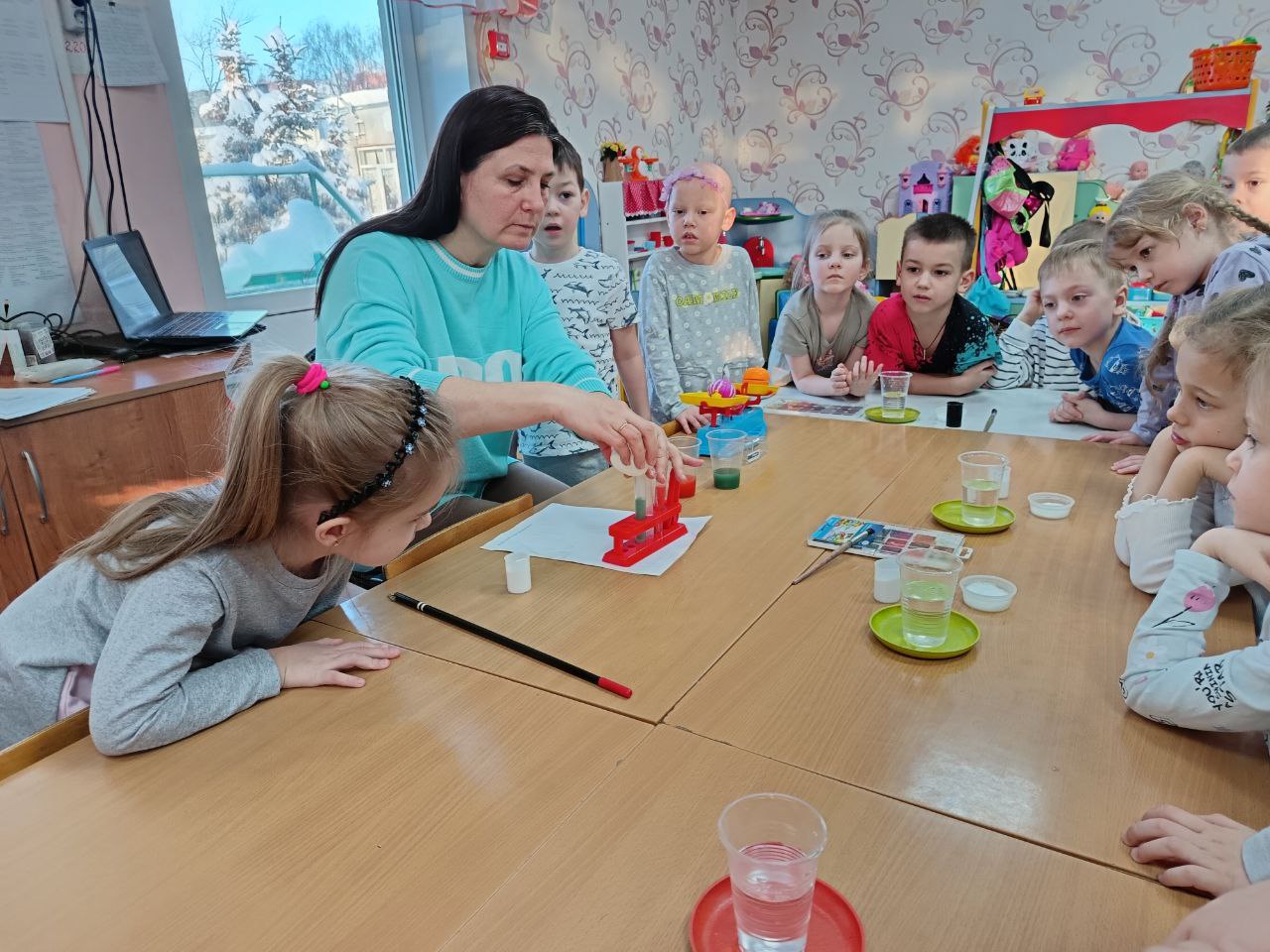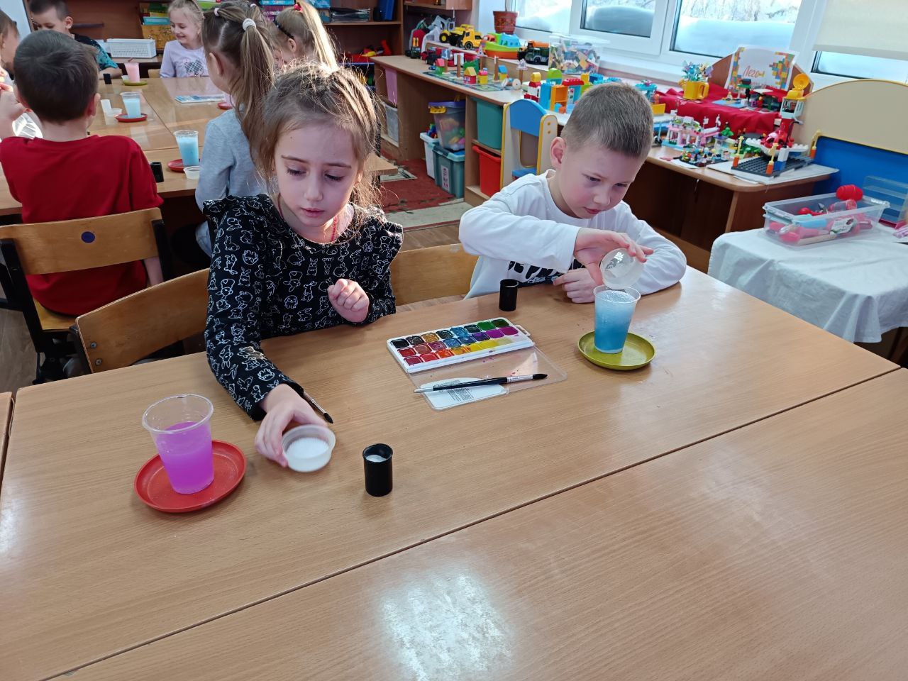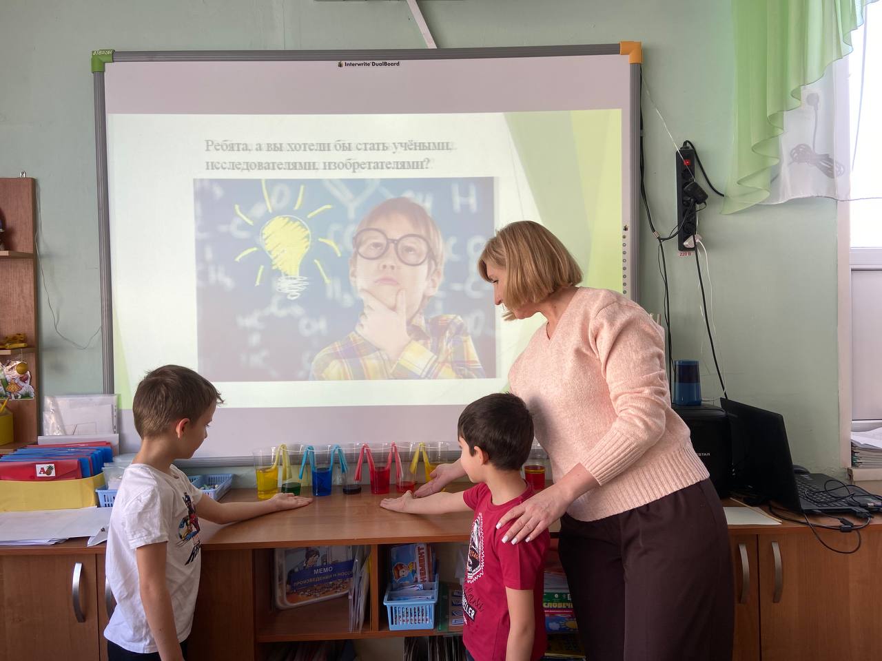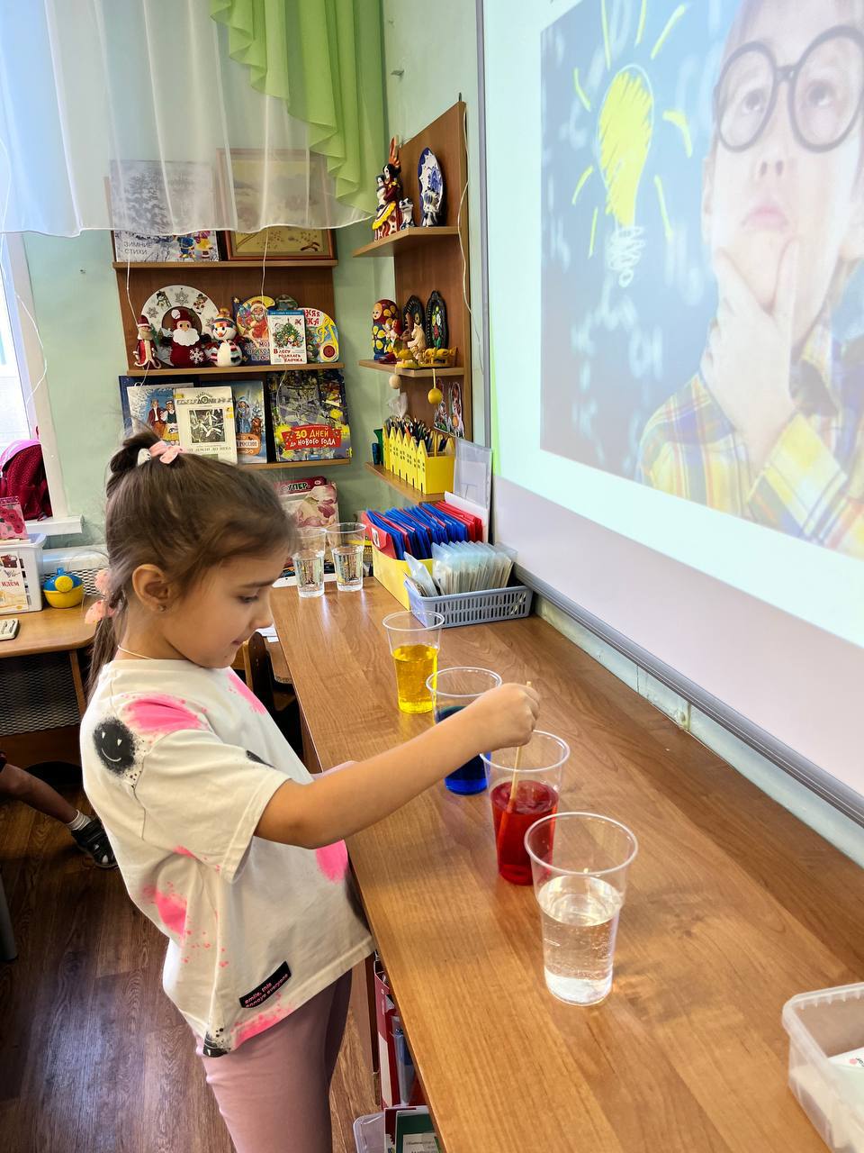 В рамках реализации проекта «Предшкола: стандарт детского сада»на тематической неделе «Экспериментариум» в подготовительной группе «Почемучки» прошёл День науки, посвящённый знакомству детей с увлекательным миром экспериментов. В ходе мероприятия дети смогли принять участие в создании двух познавательных опытов: "Шагающая вода" и "Лавовая лампа". Опыт "Шагающая вода" наглядно продемонстрировал детям принцип капиллярности, когда вода перемещается по бумажным полотенцам, соединяющим стаканы с разными цветами. Дети с интересом наблюдали за смешиванием цветов и формированием новых оттенков. Создание "Лавовой лампы" позволило объяснить основы плотности жидкостей и конвекции. Мероприятие было направлено на развитие познавательного интереса детей, формирование навыков наблюдения и анализа, а также на стимулирование стремления к исследовательской деятельности.
