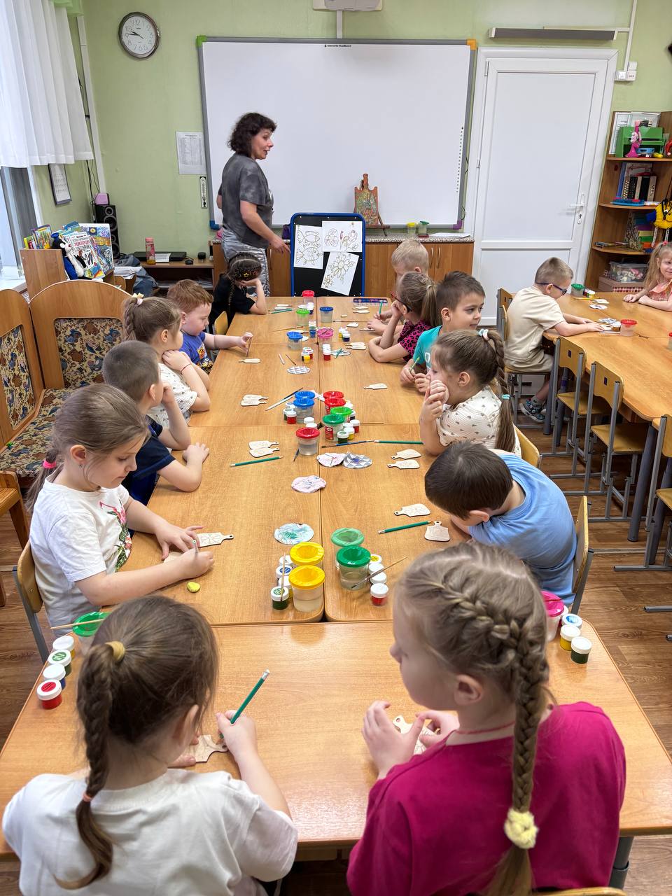 В рамках реализации тематической недели «Дни народных промыслов» в подготовительной к школе группе «Светлячки» состоялось мероприятие из цикла «Встречи с интересными людьми» Сегодня к нашим ребятам приходила настоящая волшебница — художник Олеся Владимировна. Она раскрыла детям секреты своей профессии и окунула малышей в красочный мир народных промыслов, мир русских традиций и культуры. А потом началось самое интересное: наши дети превратились в мастеров! Открылась творческая мастерская «Юные художники и волшебные кисточки!» С большим старанием и любовью они расписали деревянные дощечки в народном стиле.Подарочки для самых родных людей - мамочек и папочек в дни масляничной недели. Получились не просто поделки, а самые настоящие произведения искусства, яркие и душевные. Дети увлеклисьи были в восторге. Оромная благодарность Олесе Владимировне за этот познавательный и вдохновляющий мастер-класс! Он был не только про творчество, но и про любовь к семье и традициям русского народного творчества