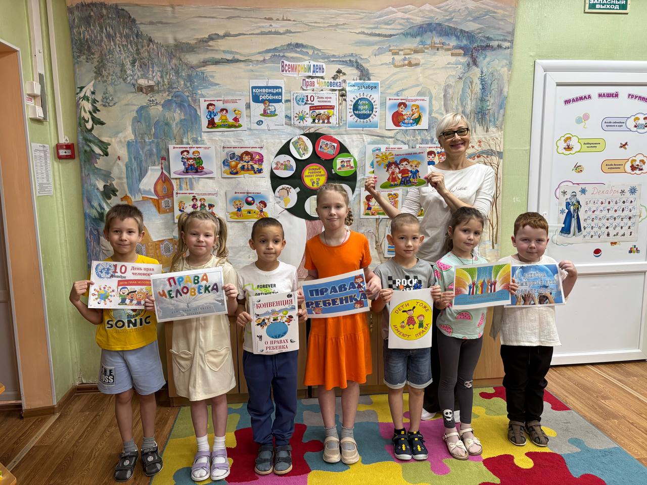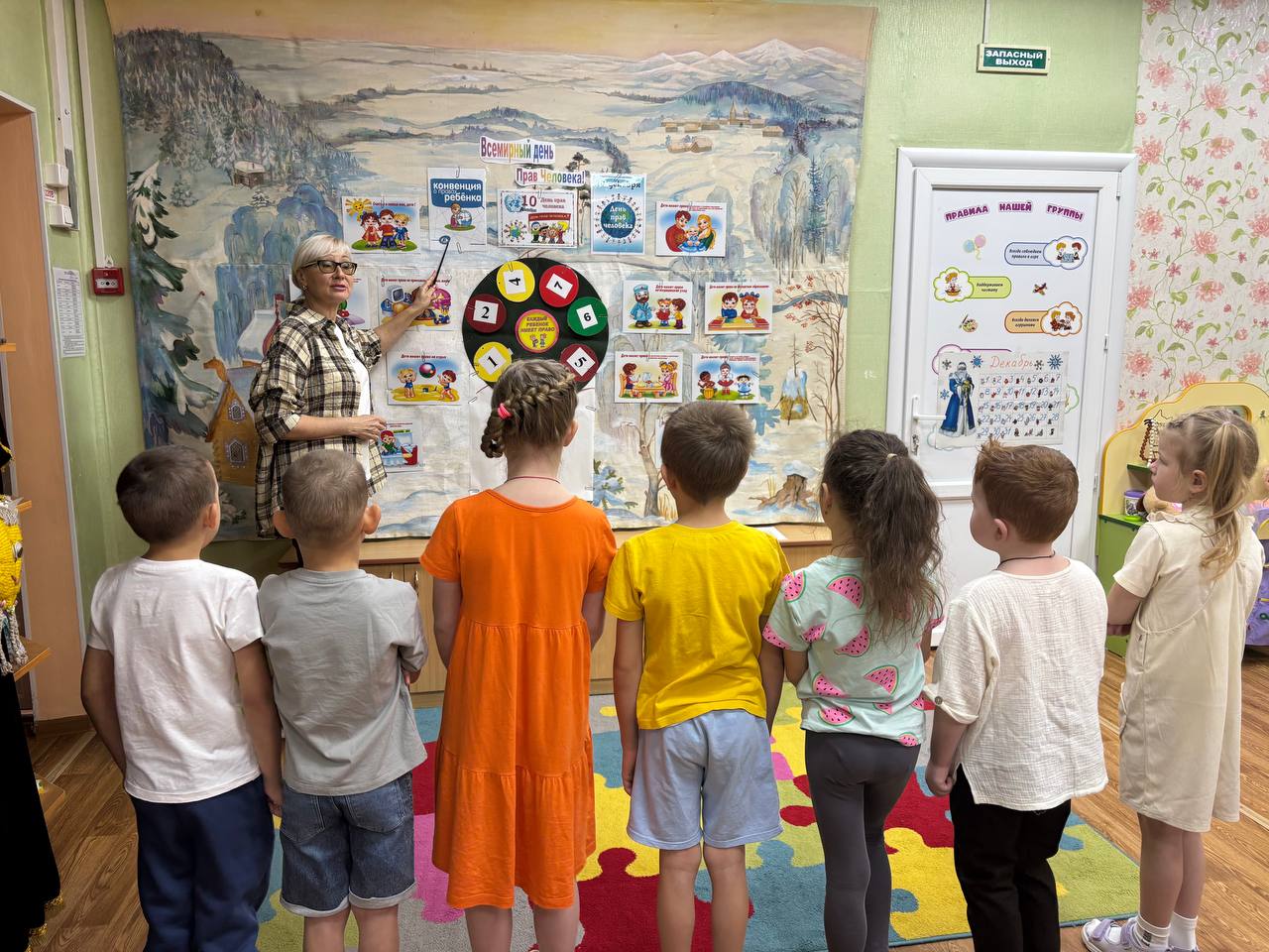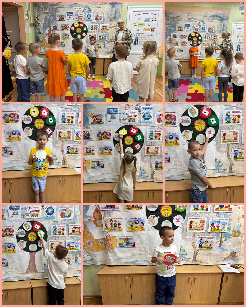 Каждый ребенок, «срывая» плод, зачитывал номер и вместе с педагогом обсуждал соответствующее право. Это позволило в наглядной форме повторить ключевые права детей: на жизнь, семью, имя, отдых, медицинскую помощь и образование.